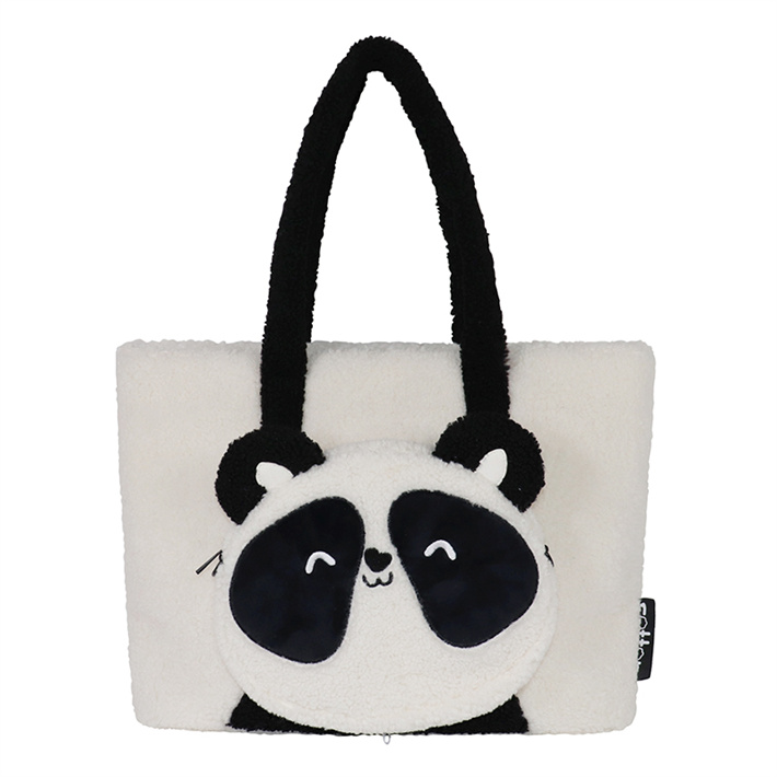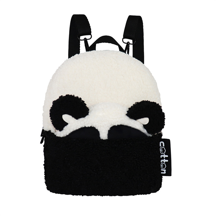 可愛(ài)熊貓卡通小巧旅行包毛茸茸小白毛絨雙肩包背包外出游玩小背包